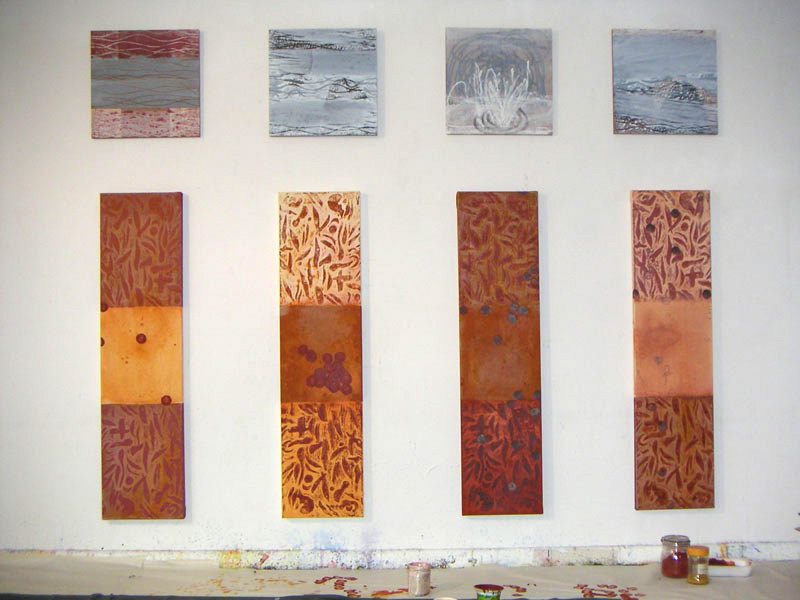 Loos c 2004 Malerei & Hochdruck auf Holz je 40 x 40 cm